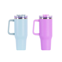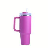 40 أونصة من فنجان سيارة معزول بجدران مع غطاء من القش ومقبض لمشروبات القهوة